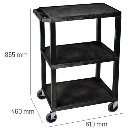 Wagen van gerecycled kunststof - 3 plateaus - Hoogte 108 cm - Draagvermogen 180 kg