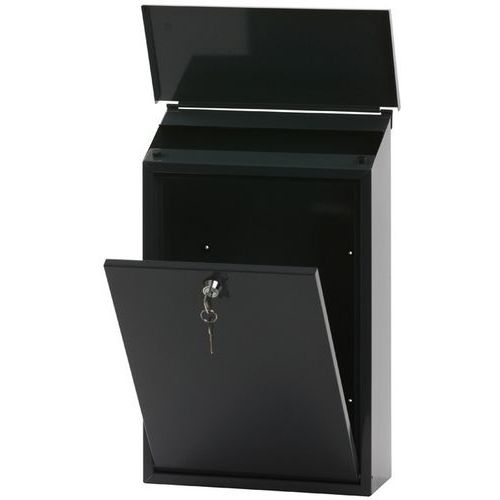 - Brievenbus met cilinderslot voor wandbevestiging. De inworpopening (25 x 4 cm) zit onder de klep zodat de post beschermd is.