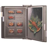 Antibacteriële muurset op spil voor het hygiënisch ter beschikking stellen van documenten. Hoes van natuurlijke organisch producten, zilverionen die ziektekiemen en bacteriën elimineren. Wandhouder met 4 pluggen om de hoezen te bevestigen en 5 ruitertjes voor hun indexering. Met 10 draaibare vakken van PVC Sterifold antimicrobieel met metalen spillen.