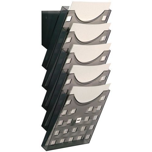 | Productnaam | Wandset folderhouder Helit, Aantal vakken: 5, Kleur: Grijs, Totale breedte: 24.1 cm, Totale hoogte: 57.8 cm |