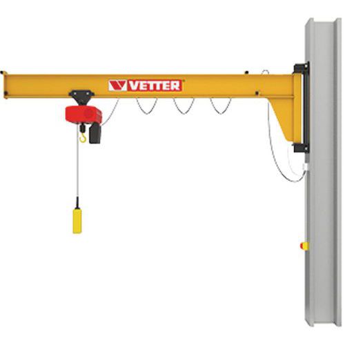 Wandzwenkkraan met verhoogde giek. Voor de maximale hefhoogte ten opzichte van de beschikbare hoogte. Met 4 bevestigingspunten. Max. belasting (kg) : 250 kg CE