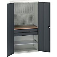 Bewaar uw spullen geordend in deze ladekast voor de werkplaats. Bodem van geperforeerde panelen en sleuvenpanelen voor bakken. Legbord eenvoudig in hoogte verstelbaar. Sluit de deuren veilig af met de driepuntssluiting en het cilinderslot. Met lades op kogellagers, voor soepel openen en sluiten. Veiligheidstips: - Plaats het meubel op een vlak oppervlak - Bevestig het aan de muur of een scheidingswand met een speciale bevestiging - Let erop dat u de aanbevolen maximale belasting niet overschrijdt en zorg voor een goede verdeling