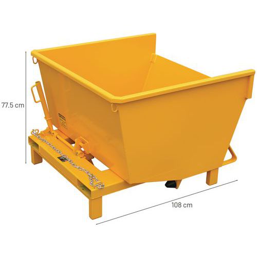 Zelfkantelende lage kiepcontainer op sokkel, Totale inhoud: 500 L, Materiaal: Staal, Kleur: Geel Zelfkantelende lage kiepcontainer op sokkel, Totale inhoud: 500 L, Materiaal: Staal, Kleur: Geel
