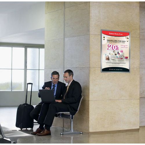 Dubbelzijdige weergave op glas dankzij het kader dat aan twee zijden te zien is.