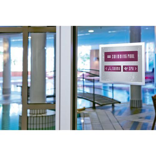 Zelfklevende wissellijst Duraframe® voor glad oppervlak. Dankzij de verplaatsbare zelfklevende achterkant hecht de lijst op alle gladde en harde oppervlakken, zoals muren, deuren, enz. Op een glazen oppervlak is de inhoud aan voor- en achterzijde af te lezen. Eenvoudig en snel actualiseren van informatie, documenten blijven stevig zitten dankzij de magnetische omlijsting. Kan staand of liggend worden gebruikt. De ideale oplossing voor het weergeven van algemene en verplichte bedrijfsinformatie, aanbiedingen, interne regelgeving, mededelingen, enz.