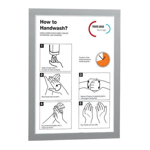 Zelfklevende wissellijst Duraframe® voor glad oppervlak. Dankzij de verplaatsbare zelfklevende achterkant hecht de lijst op alle gladde en harde oppervlakken, zoals muren, deuren, enz. Op een glazen oppervlak is de inhoud aan voor- en achterzijde af te lezen. Eenvoudig en snel actualiseren van informatie, documenten blijven stevig zitten dankzij de magnetische omlijsting. Kan staand of liggend worden gebruikt. De ideale oplossing voor het weergeven van algemene en verplichte bedrijfsinformatie, aanbiedingen, interne regelgeving, mededelingen, enz. Gemaakt in de EU Klantgarantie : 2 jaar