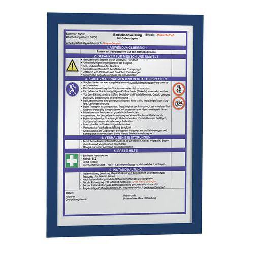 Zelfklevende wissellijst Duraframe® voor glad oppervlak. Dankzij de verplaatsbare zelfklevende achterkant hecht de lijst op alle gladde en harde oppervlakken, zoals muren, deuren, enz. Op een glazen oppervlak is de inhoud aan voor- en achterzijde af te lezen. Eenvoudig en snel actualiseren van informatie, documenten blijven stevig zitten dankzij de magnetische omlijsting. Kan staand of liggend worden gebruikt. De ideale oplossing voor het weergeven van algemene en verplichte bedrijfsinformatie, aanbiedingen, interne regelgeving, mededelingen, enz.
