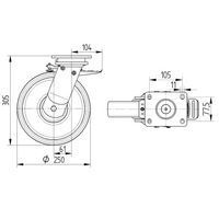 Zwenkwiel aluminium, Max. belasting: 1000 kg, Ø: 250 mm, Wiel/Zwenkwielen: Bokwiel/zwenkwiel Zwenkwiel aluminium, Max. belasting: 1000 kg, Ø: 250 mm, Wiel/Zwenkwielen: Bokwiel/zwenkwiel