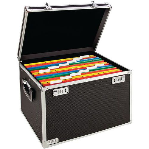 | Productnaam | Opbergkoffer afsluitbaar voor hangmappen A4, Materiaal: MFC hout, Kleur: Zwart, Totale lengte: 381 mm |