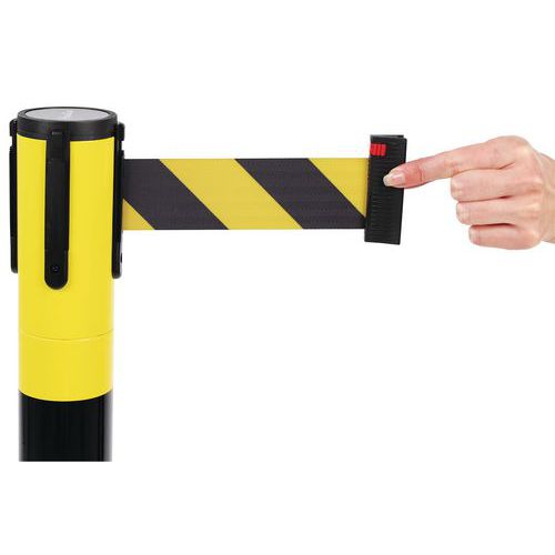 | Productnaam | Paal met tweekleurige band en basis met draaikop, Gebruiksomgeving: Binnen, Band kleur: Zwart/geel |