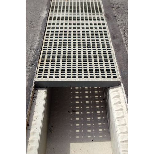 Harde en duurzame betegelde roosterdrager. Goede mechanische weerstand dankzij de verstevigde constructie. Bevestigingssysteem met speciale klemmen. Met geïntegreerde siliciumkorrels.