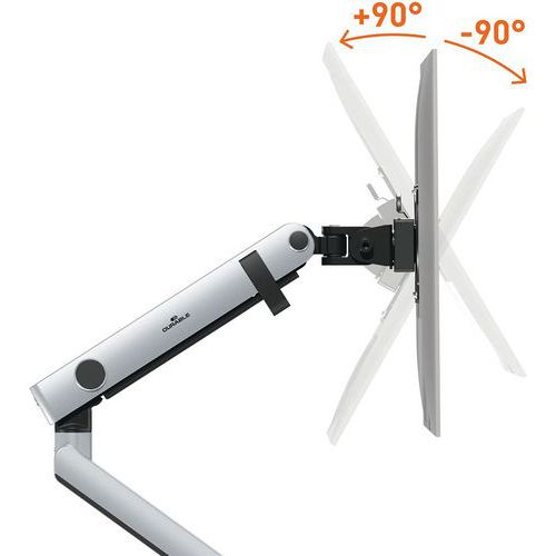 Steun voor 1 scherm met flexibele arm en dubbel bevestigingssysteem inbegrepen (kabeldoorgang en klem).