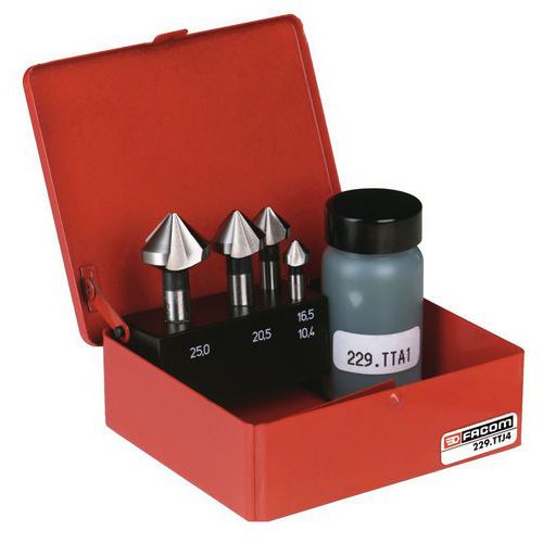 | Productnaam | Set van 4 verzinkfrezen 90°, Model: Verzinkfrezen, Aantal stuks: 4, Gebruik: Boren, Type nr.: 229.TTJ4 |