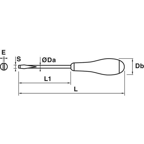 - Doorlopende kling maakt het mogelijk om met een geleide slag op het uiteinde van de schroevendraaier te slaan zonder deze te beschadigen