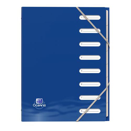 | Productnaam | Sorteermap Oxford Oceanis A4 8p PP opaak assorti, Aantal tabs: 8, Kleur: Diverse, Type bestandsmap: Sorteermap |