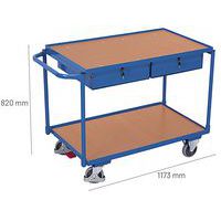 Wagen met 2 plateaus en duwstang naar beneden, Max. belasting: 200 kg, Totale hoogte: 820 mm