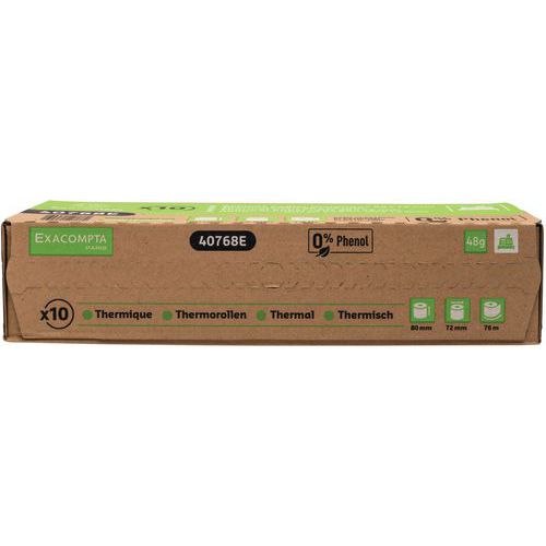 | Productnaam | Thermorol, Gramsgewicht: 48 g/m², Lengte vel: 76 m, Rol lengte: 80 mm, Rol Ø: 72 mm, Kleur: Wit |