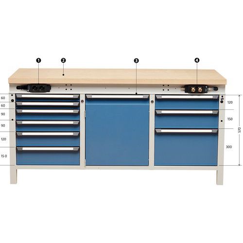 | Productnaam | Werkbank Function 175 compleet, Max. belasting: 1500 kg, Totale hoogte: 850 mm, Totale breedte: 1750 mm |