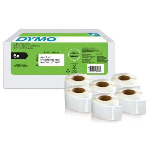 Papieren etiketten voor Dymo® LW voor het eenvoudig afdrukken van één tot honderden etiketten.